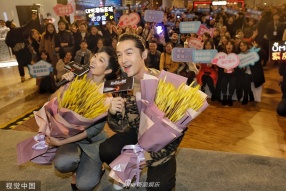 >组图:胡歌获女粉丝送"大麦"表情羞涩 与桂纶镁同台引全商场围观