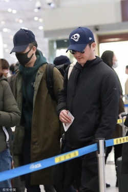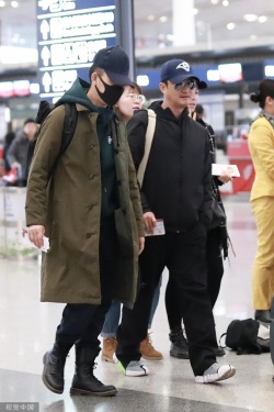 >组图:“攀登者”再合体!吴京张译现身机场 打扮低调仍显气场