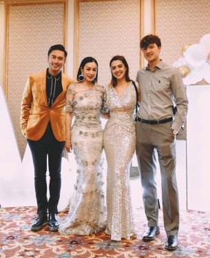 11月30日,钟丽缇大女儿Yasmine在社交平台上分享了与男朋友、妈妈、继父的同框照,照片中钟丽缇和女儿都穿着修身礼服,身材凹凸有致,女儿男友高大帅气很养眼。