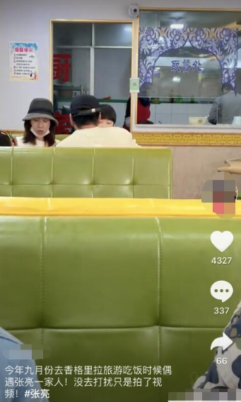 新浪娱乐讯 有网友在社交网站晒出一段视频画面,称9月份在香格里拉偶遇张亮和寇静。画面中张亮和寇静在餐馆里有说有笑,而天天和妹妹在一旁也十分欢脱。11月29日,张亮宣布与寇静于2017年离婚。