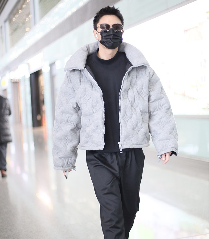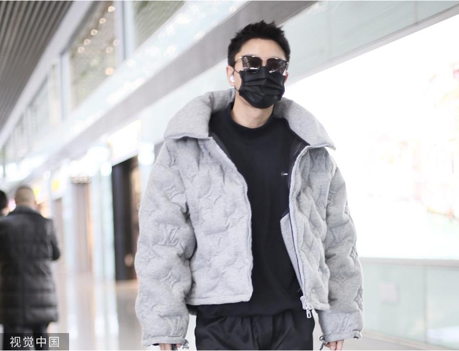 >组图:贾乃亮官宣离婚后首现身机场 穿灰色服装潮流品味在线