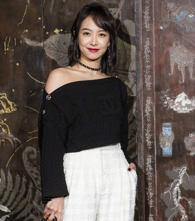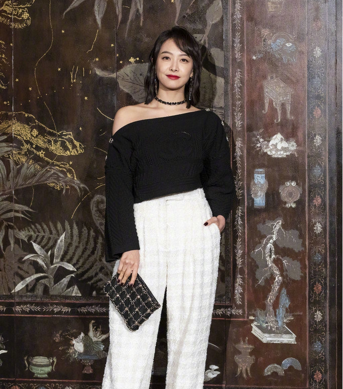 组图:刘雯斜纹软呢开衩裙复古时髦 宋茜黑色露肩装时尚干练