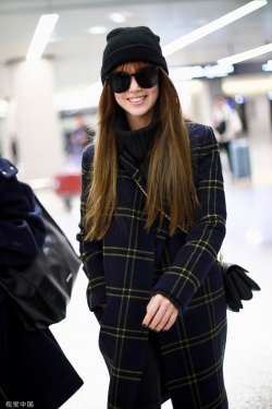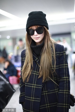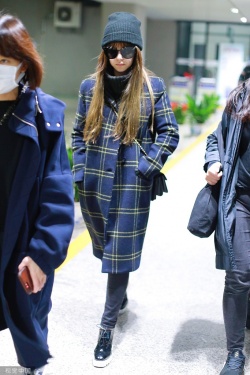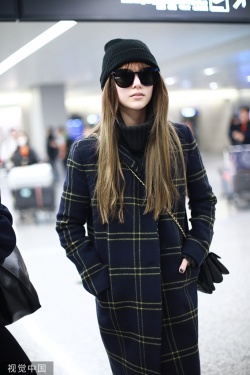 2019年12月5日,上海,昆凌现身机场。她梳齐刘海黑超遮面对镜甜笑,十分可爱,身穿格纹外套尽显复古气质。