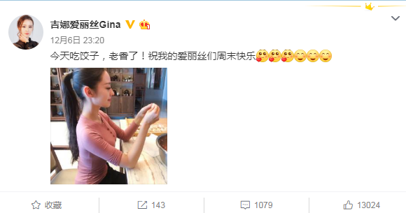 >组图:吉娜晒老公视角罕见下厨 嫂子包饺子馋死网友